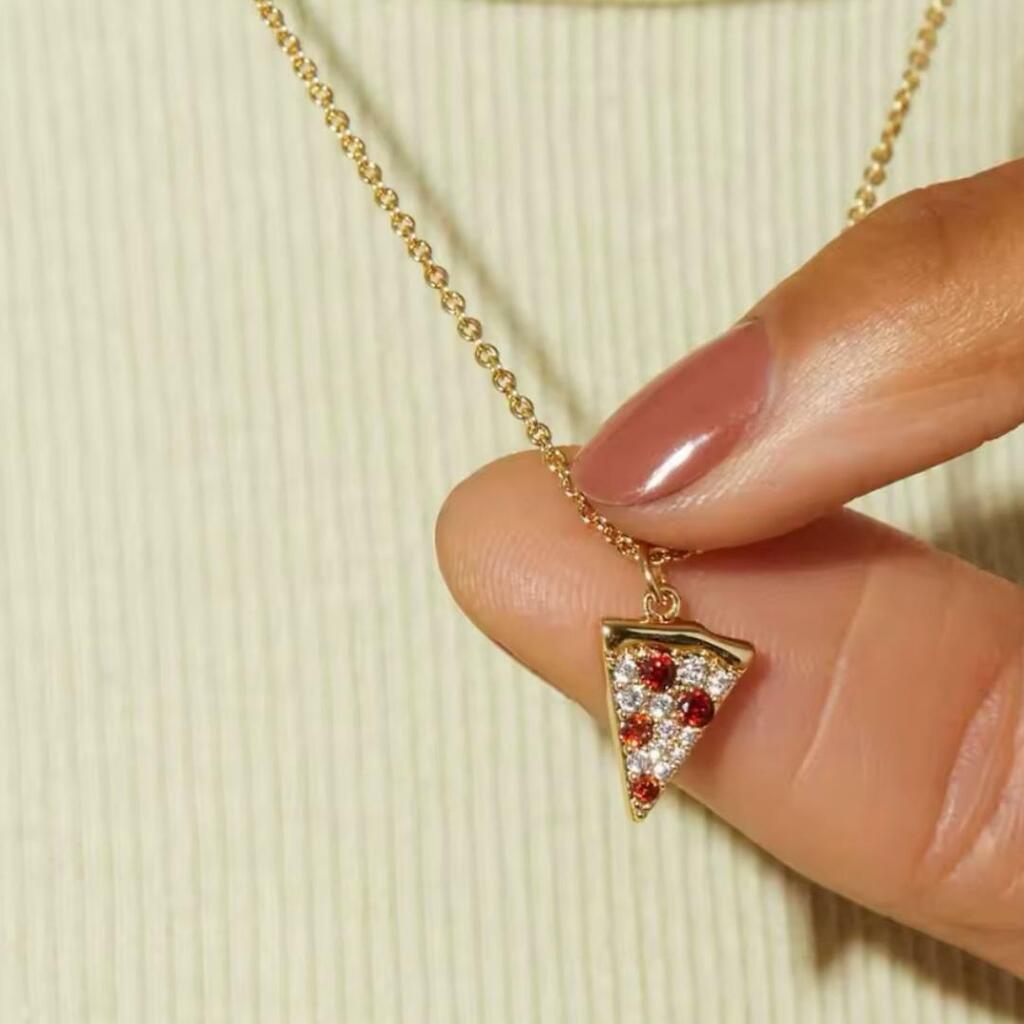 Porque la moda también se disfruta… este collar con dije en forma de pizza es la mezcla perfecta entre diversión y brillo. Los micro circones le dan un toque de luz que lo convierte en un accesorio único y lleno de personalidad.