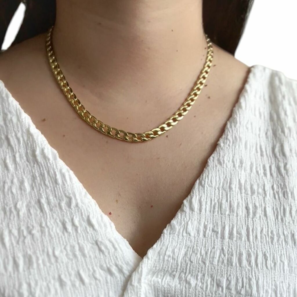Una pieza que no pasa desapercibida: la gargantilla Alexa combina la fuerza de sus eslabones gruesos con la elegancia del baño de oro 18k. Ideal para usar sola como protagonista o acompañada de otros collares para un look en capas.